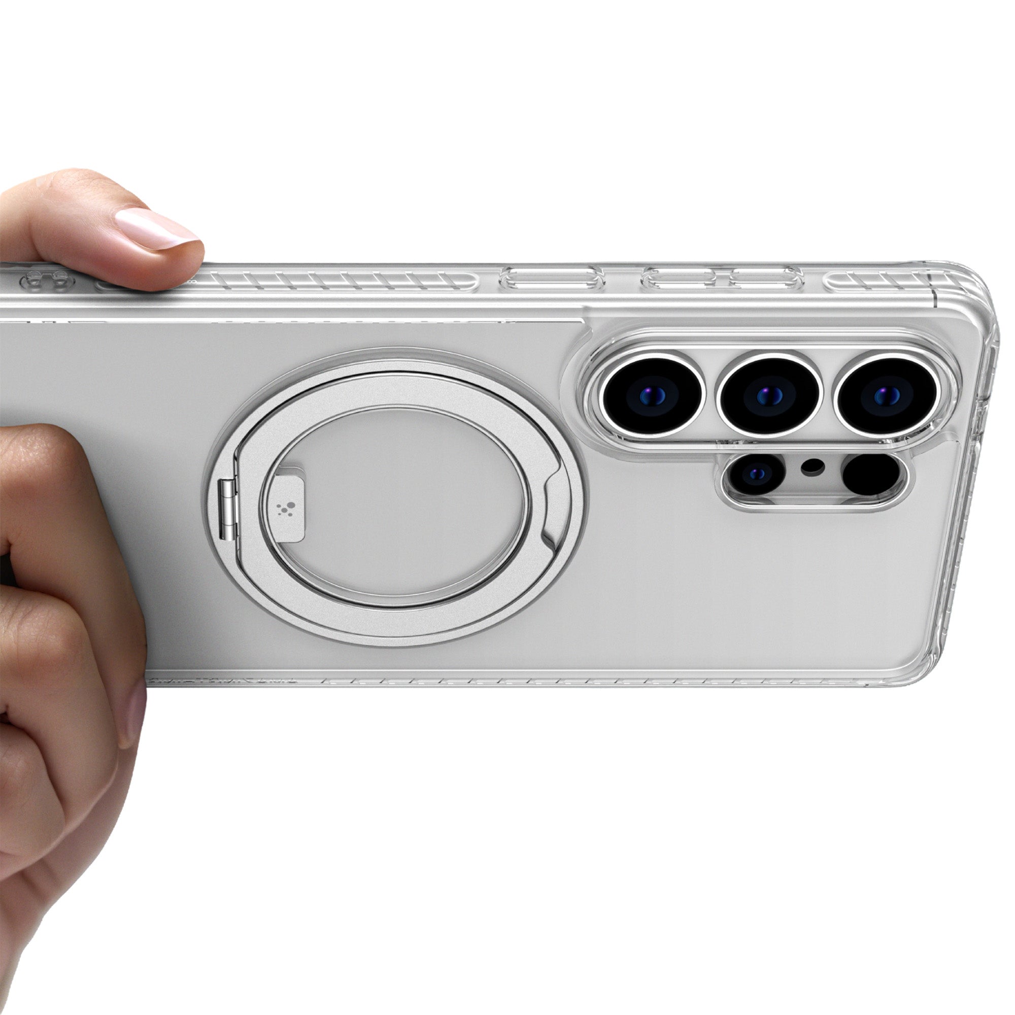 The integrated ring rotates smoothly for hands-free viewing in both vertical and horizontal positions. It folds flat when not in use and offers added grip and stability for daily tasks. Compact in design, it also supports basic MagSafe alignment for charging and accessory use.