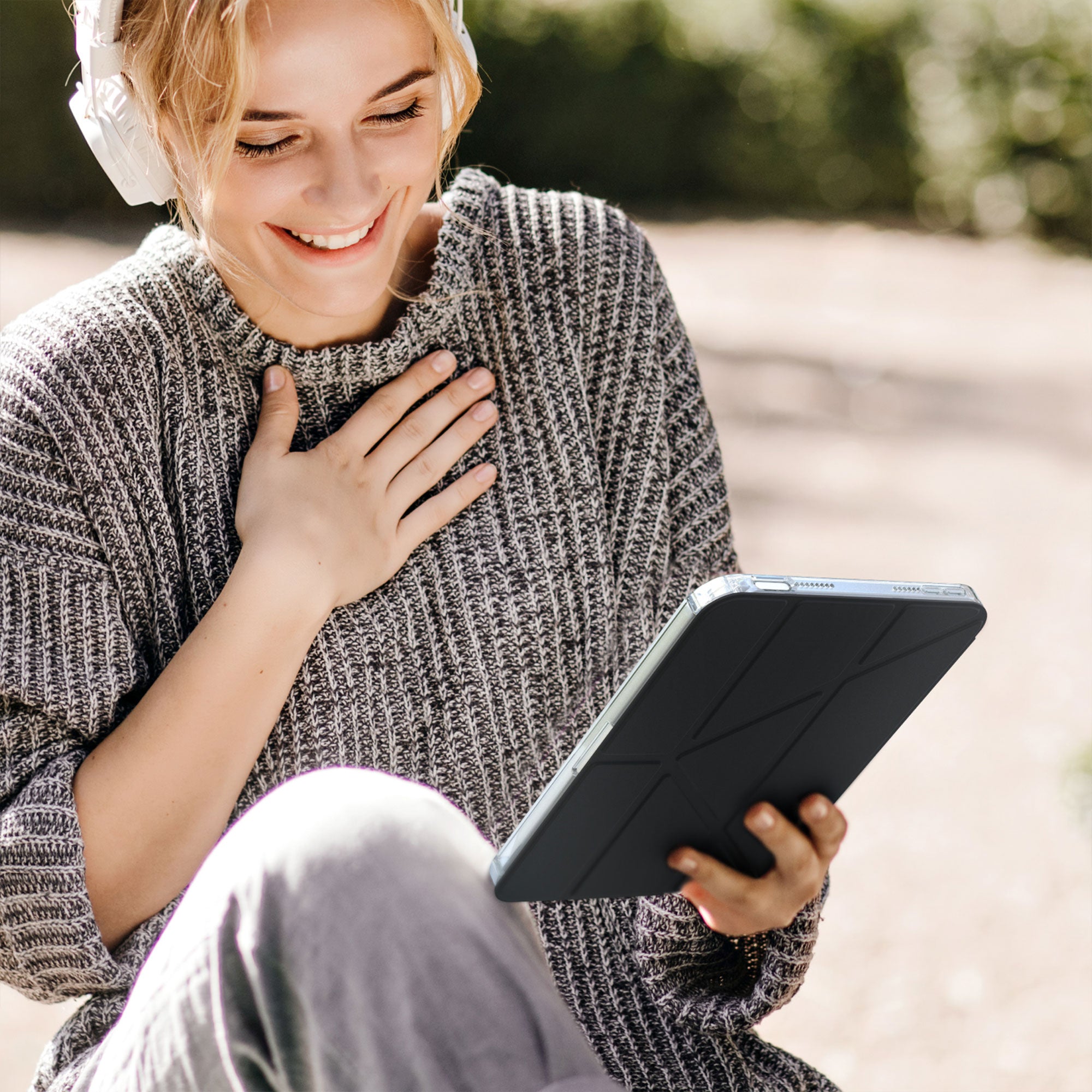 - 多角度支架設計:採用創新的 Y 形可摺疊結構,這款保護殼可因應不同的觀看角度,提供最佳的便利性,適用於視訊通話、工作或放鬆時使用。它的多樣位置選擇使其適用於各種情境,不論您是輸入文字還是觀看電影。